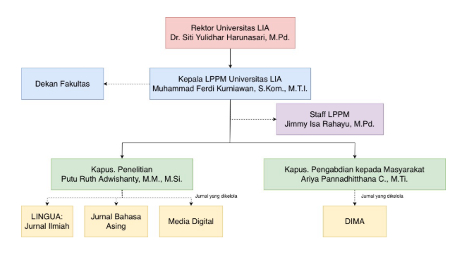 15. Membantu Kepala LPPM mengelola jurnal penelitian yang dikelola oleh LPPM Universitas LIA seperti Lingua, JBA, dan Media Digital;
